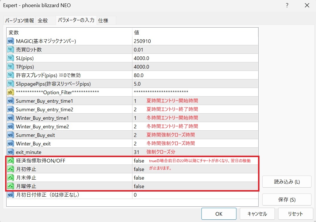 [phoenix blizzard NEO] パラメータ説明